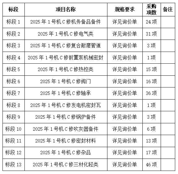 中電建(崇信)發(fā)電有限公司2025年1號機(jī)C修設(shè)備物資采購公告 | ||||