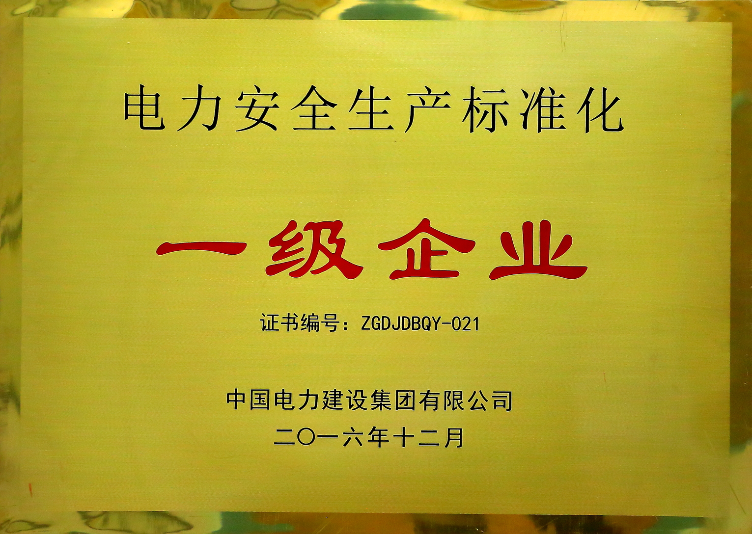 電力安全生產(chǎn)標(biāo)準(zhǔn)化一級(jí)企業(yè)